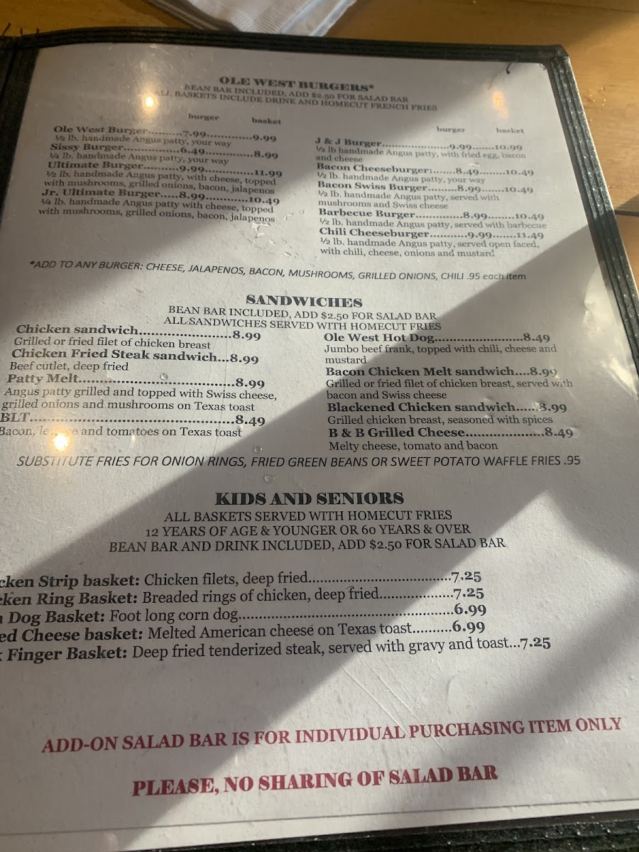 Welcome to Ole West Bean & Burger, a hidden gem located in Canton, TX. This inviting eatery offers a menu filled with delectable options that cater to diverse tastes. From mouthwatering chicken specialties like the Teriyaki Chicken and Chicken Primavera to their renowned burgers, including the Ole West Cheeseburger and the indulgent Bacon Swiss, there's something for everyone.